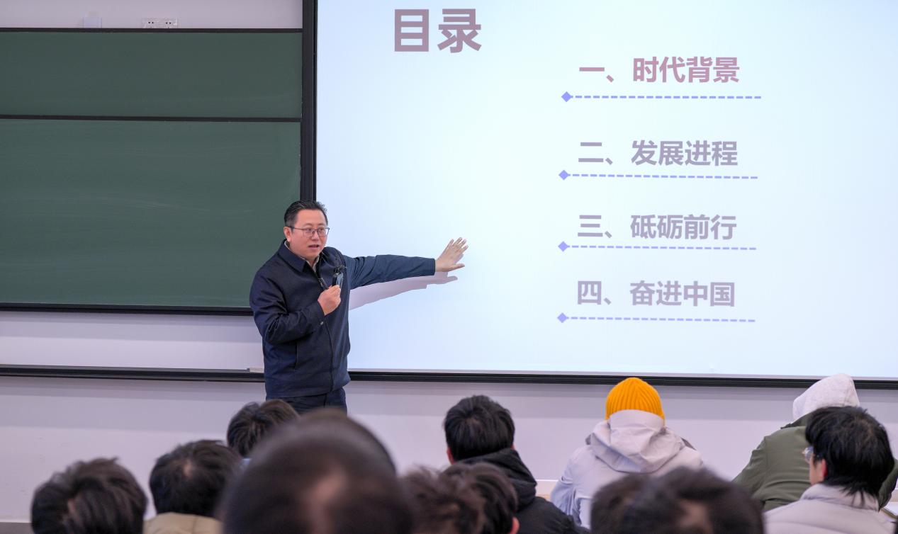 12月23日,副院长王宏志走进马克思主义学院黄伟老师的研究生课堂,以“中国工业的发展历程与未来展望”为主题,深情回顾了新中国工业从无到有、从小到大、从弱到强的壮丽征程。王宏志向同学们讲解了自新中国成立以来,中国工业经历了翻天覆地的变化;改革开放后,中国工业更是迎来了前所未有的发展机遇,迅速跃升为全球制造大国,与众多国家建立了紧密的贸易伙伴关系。王宏志强调,我们学校所在的闵行以及临港区域,汇聚了众多航空航天领域的顶尖企业和科研机构,同学们要充分利用好这一得天独厚的实践平台和就业机会,近距离接触行业前沿,深入了解行业动态。他鼓励同学们要充分利用学校丰富的学术资源和区位优势,努力学习专业知识,为将来投身祖国的先进工业制造领域打下坚实的基础。