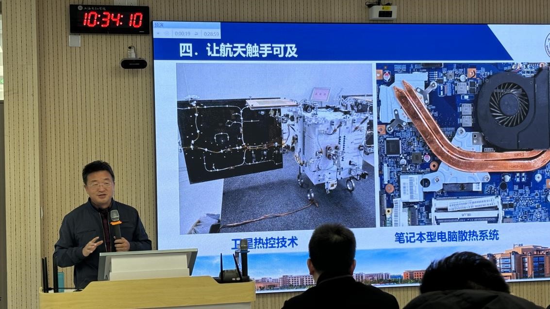 12月12日,副院长杨俊杰、航空学院副院长刘伟亮,走进思政课堂,和马克思主义学院刘妤老师共上一堂思政课。本次课程内容以《思想道德与法治》第五章“遵守道德规范 锤炼道德品质”为理论依托,把职业道德和航天精神结合起来,把学生发展和学校规划结合起来。杨俊杰以“以梦为马,不负韶华”为主题,以上海电机学院一号卫星发射升空为“梦开始的地方”,向同学们讲解了学校何以萌发航空航天梦、航空航天梦的现实基础、实现航空航天梦的布局和规划。同时,杨俊杰强调,载人航天精神表现了特别能吃苦、特别能战斗、特别能攻关、特别能奉献的内涵,勉励各位同学以先锋模范人物为榜样,发扬工匠精神,努力成长为卓越的现场工程师。刘伟亮讲授的主题为“航天让生活更美好”,从我国发展航天事业的重要意义、航天工业的国际环境、航天产业的分类、商业航天的发展展望等四个方面,深度剖析了航天对国家、社会、个人的重要影响。