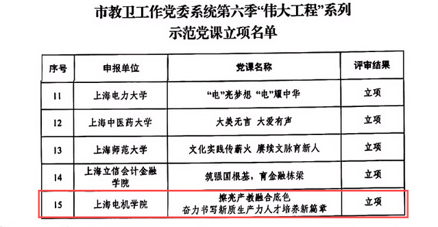 近日,市教卫工作党委发布《关于公布第六季“伟大工程”系列示范党课立项名单的通知》,学校“擦亮产教融合底色、奋力书写新质生产力人才培养新篇章”获批立项。