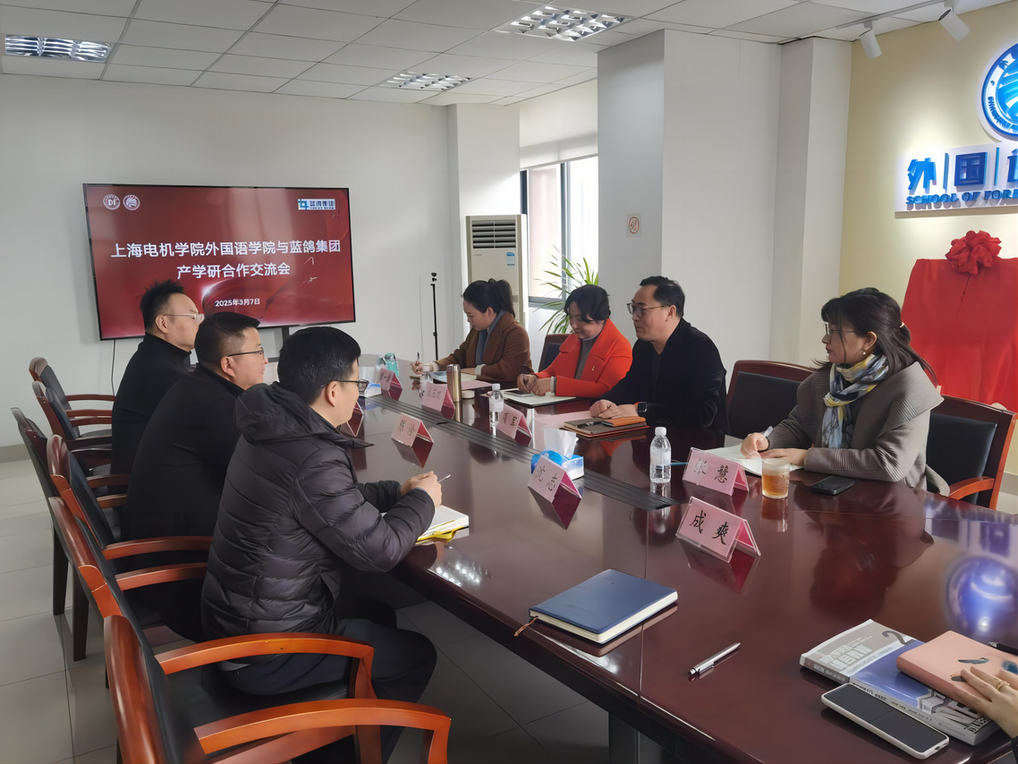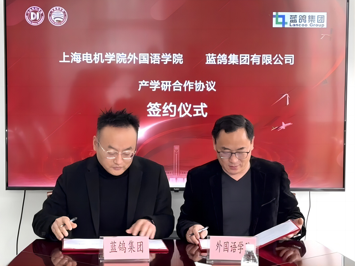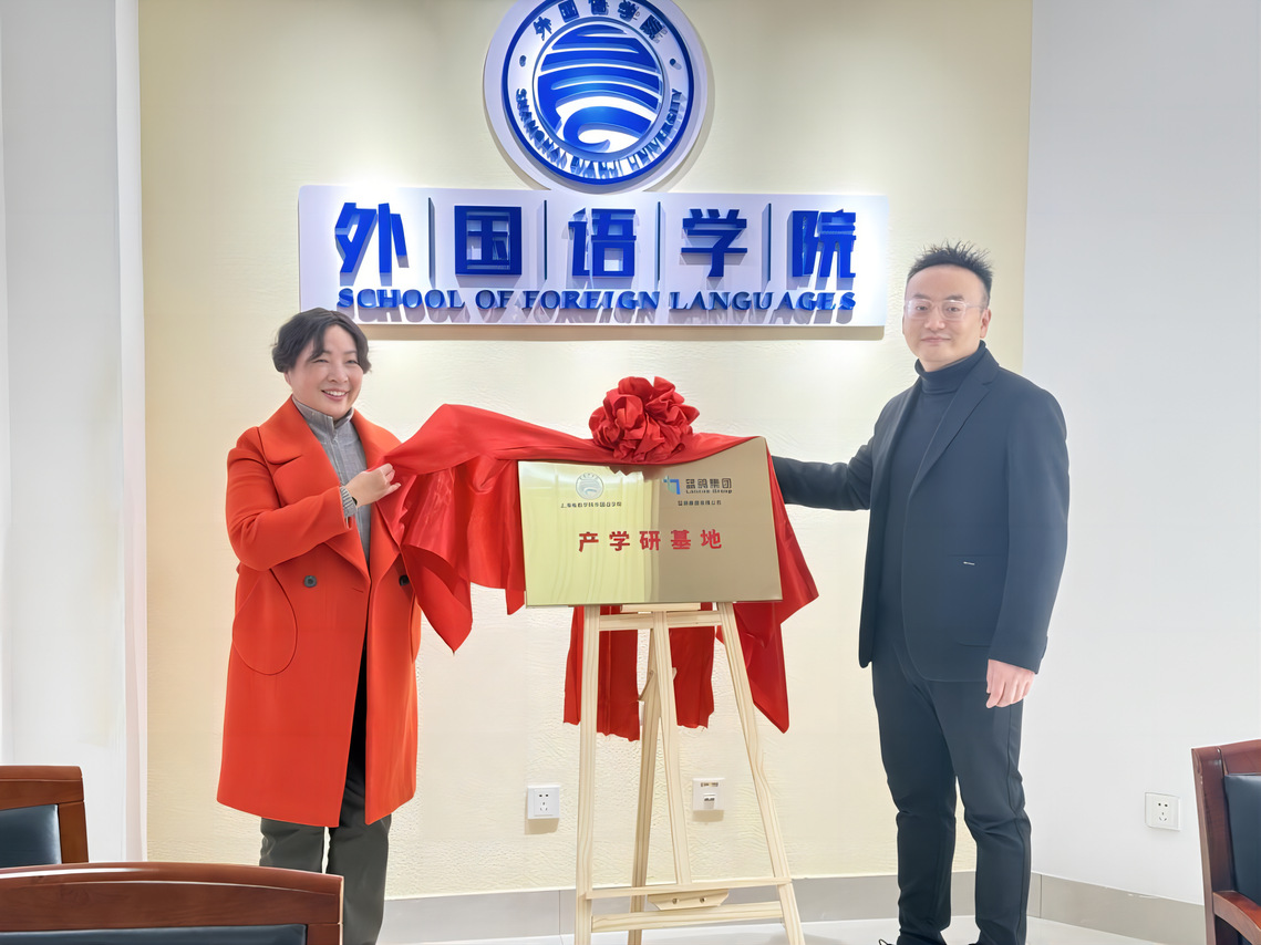 3 月 7 日,外国语学院与蓝鸽集团正式签署产学研战略合作协议,同时举行了 “产学研基地” 揭牌仪式。学院党政班子成员项军、张玉双、甄一捷、张慧,蓝鸽集团副总裁秦衡、上海区域总负责人陈淦等出席了此次活动。此次合作旨在深入贯彻教育综合改革精神,响应教育数字化战略行动,为应用型外语人才培养助力。