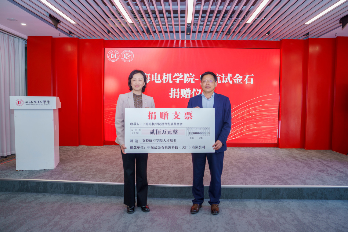 4月15日,上海电机学院与中航试金石检测科技有限公司在临港校区行政楼举行实验室共建研讨会暨捐赠仪式。上海电机学院党委副书记、院长龚思怡,中航试金石集团董事长李鲁林等双方代表出席,会议由航空学院党总支副书记苏庆刚主持。