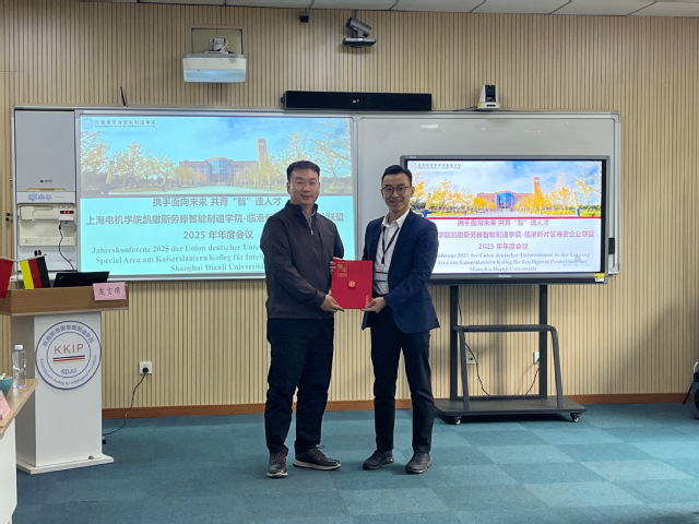 2025年4月16日下午,上海电机学院凯撒斯劳滕智能制造学院携手临港新片区德资企业联盟,在凯劳智能制造学院212会议室举办了主题为“携手面向未来 共育‘智’造人才”的2025年年度会议。本次会议汇聚了伦茨(上海)传动系统有限公司、缆普电缆制造(上海)有限公司、上海电气凯士比核电泵阀有限公司、西德克精密拉深技术(上海)有限公司、冯阿登纳真空设备(上海)有限公司、磊驰传动技术(上海)有限公司、SineFine Technology GmbH、伟世焜自动化技术(上海)有限公司等8家德企代表,共同探讨校企合作新路径,推动智能制造领域的人才培养和技术创新。