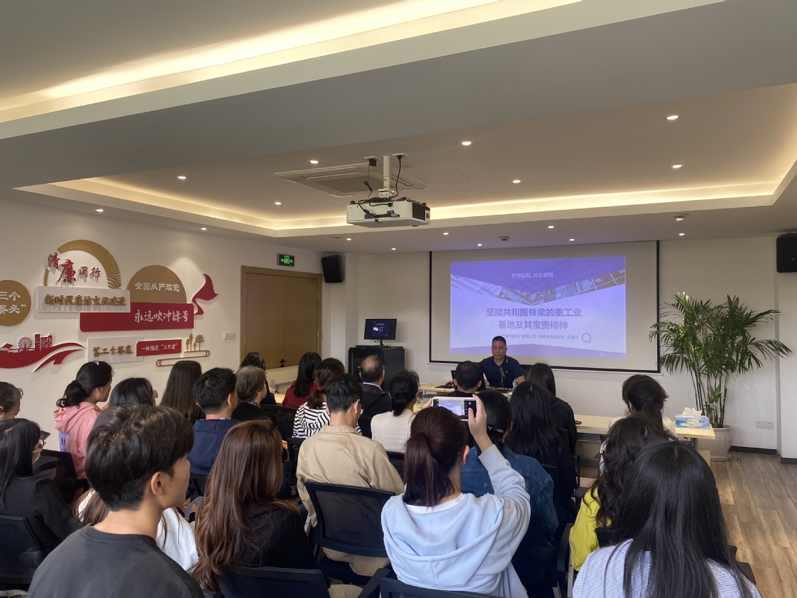 活动伊始,上海汽轮机厂党委宣传部部长夏惠忠以《坚挺共和国脊梁的重工业基地及其宝贵精神》为题,为全体党员干部带来一堂生动深刻的专题党课。夏部长通过珍贵的历史影像和翔实文献,带领大家穿越时空:从仅用78天建成的闵行卫星城建设奇迹,到1955年新中国第一台6000千瓦汽轮机的诞生历程;从世界首创双水内冷发电机组的突破,到象征工业强国的首台万吨水压机研制过程中铸就的万吨精神。特别讲述了老一辈建设者扎根一线的感人事迹——厂领导主动放弃干部待遇,与工人同吃同住,将毕生积蓄捐献国家;黄敬部长连续三个月驻厂指导,与技术人员攻克叶根槽0.9丝精度的技术难关,淬炼出一丝不苟的工匠精神。这堂党课以鲜活的历史切片,生动诠释了克己奉公、艰苦奋斗、锐意创新的精神谱系。党员们深切感受到,正是这些融入血脉的红色基因,铸就了共和国重工业的钢铁脊梁,也为新时代推进全面从严治党提供了历久弥新的精神坐标。