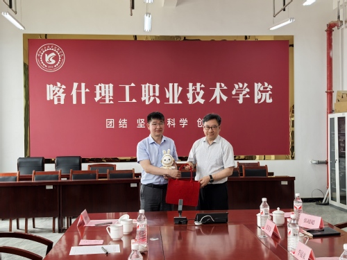 在喀什理工职业技术学院调研期间,鲁雄刚一行看望慰问了我校援疆教师、现任机械电气系主任郑翔,实地参观了喀什理工机械电气系及汽车工程系的教学、实训场所,详细了解学院在专业建设、人才培养模式和科研创新以及服务地方产业发展等方面的进展与成效。座谈会上,喀什理工党委书记李福来代表全院师生对上海电机学院一行的到来表示热烈欢迎,他高度赞扬了援疆教师郑翔在机械电气系专业建设、技能大赛指导、实验室建设、青年教师带教等方面作出的突出贡献,并详细介绍了学院的发展概况、办学特色及未来规划。喀什理工职业技术学院院长彭宗祥衷心感谢上海电机学院对援疆工作的支持,希望双方在前期良好合作的基础上,进一步深化在学科专业建设、高水平师资联合培养、科研项目申报、师生互访交流等领域的合作,探索建立更稳固、高效的合作模式,共同推动援疆工作提质增效。鲁雄刚对喀什理工职业技术学院的热情接待表示感谢,他介绍了学校的发展历程和办学特色,充分肯定了郑翔老师在援疆期间的工作表现,并感谢喀什理工对援疆教师的信任与关怀。鲁雄刚表示,学校将持续推进两校深度合作,欢迎喀什理工领导来校交流访问。