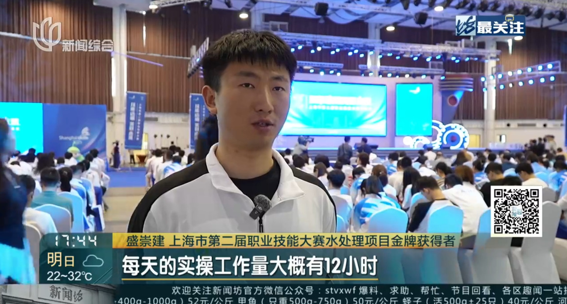 6月24日,历时3个月的上海市第二届职业技能大赛在青浦东方绿舟圆满闭幕。我校学子盛崇建参加水处理技术赛项并斩获金牌,他同时作为本次赛事唯一代表选手接受了上海电视台的采访。
