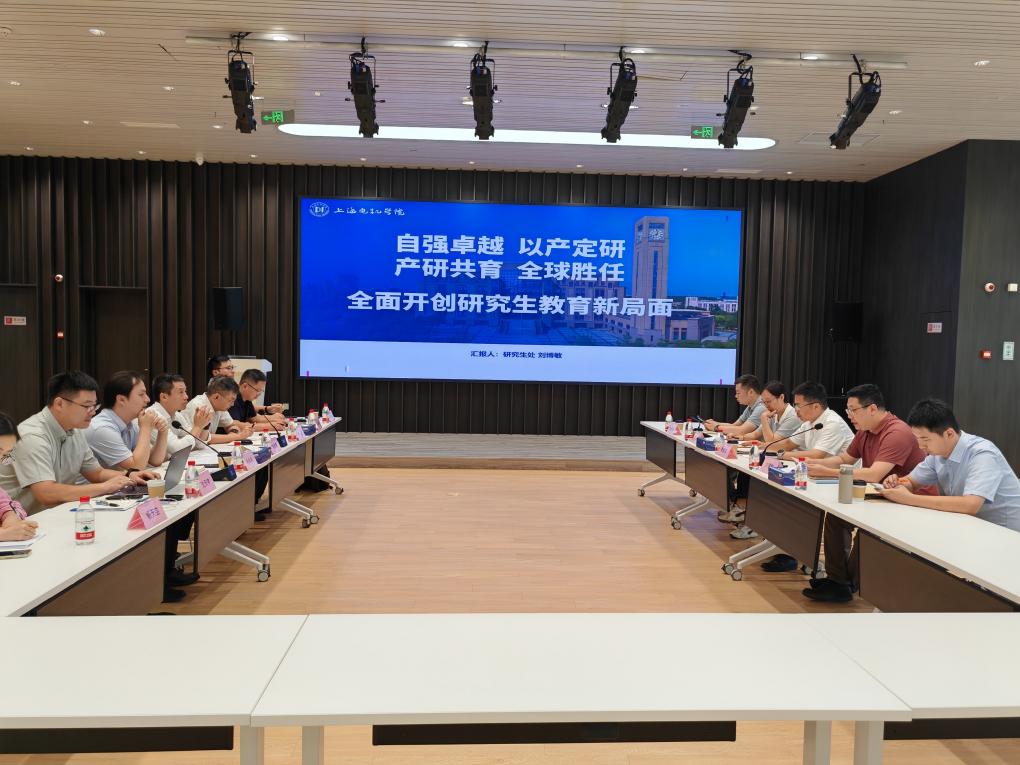 刘伟惠对朱洪春一行表示欢迎,孙瑜真详细介绍了张江临港公司的发展脉络,并对公司的核心定位与战略价值、产业布局与重点项目、配套设施与服务生态等进行了重点介绍。研工部刘博敏作了“自强卓越、以产定研、产研共育、全球胜任”研究生教育专题汇报。双方围绕产教融合、人才共育、卓越工程师创新培养平台等议题展开热烈讨论。