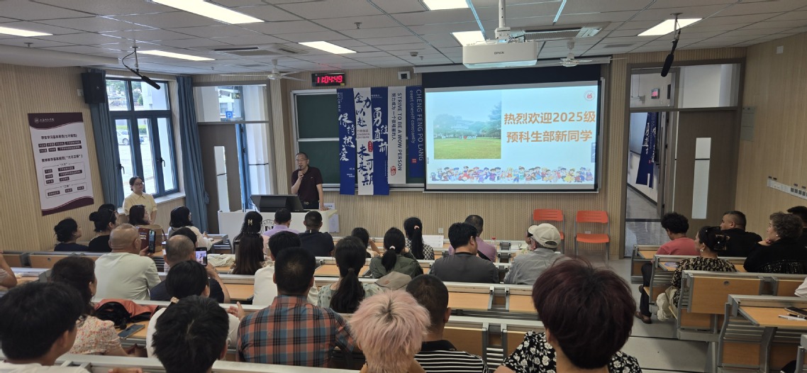 典礼最后,学院党总支书记、院长蒋建军发表了热情洋溢的致辞,他围绕“放心、用心、齐心”三个关键词,对新生和新生家长提出了3点寄语:第一点,请家长们放心,学校在师资配备、生活设施、经费支持等方面为预科生的成长打造了一个“坚实可靠的平台”;第二点,请同学们用心,希望同学们从“被动学习”到“主动求知”、从“熟悉的文化环境”到“多元的交流融合”、从“依赖家庭”到“自立生活”;第三点:盼家校齐心,希望各位家长保持与老师的畅通联系、多给予孩子情感上的鼓励和支持,信任学校的专业培养,信任孩子的适应能力。