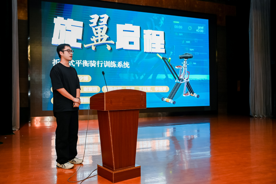 向婧同学和赵少博同学分别向大家展示大学生机械工程创新大赛的参赛项目,向婧同学的项目灵感来源于生活中奶奶的行动不便,赵少博同学的项目灵感来源于社会大众的需求,他们从生活中寻找科创项目的来源,在改变世界的过程中提升自我。