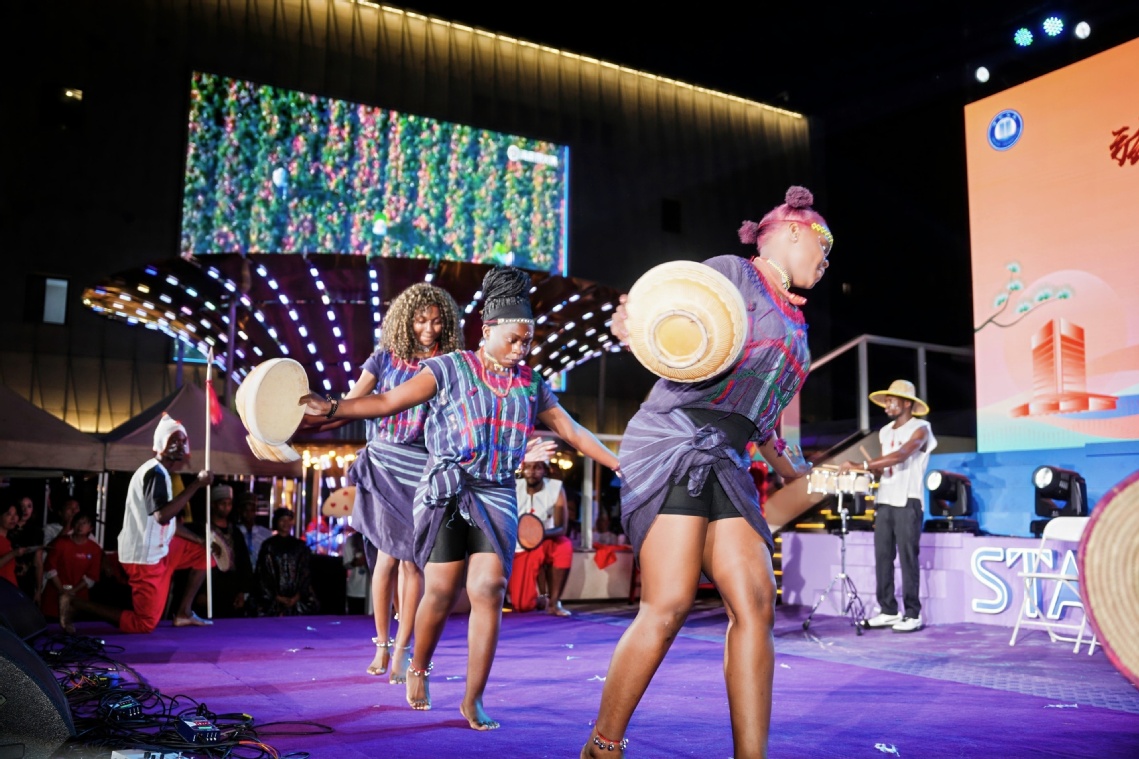 活动现场,上海电机学院国际学生带来精彩表演。俄罗斯留学生基米尔的《喀秋莎》独唱,以深情演绎点燃全场;Yahaya等14名学生团队表演的自创非洲剧目《The Reign of King Mzina》,通过生动的歌舞展现非洲文化魅力。这些节目与非洲情景剧、中国传统美食展示等交相辉映,共同呈现“各美其美,美美与共”的文明画卷。