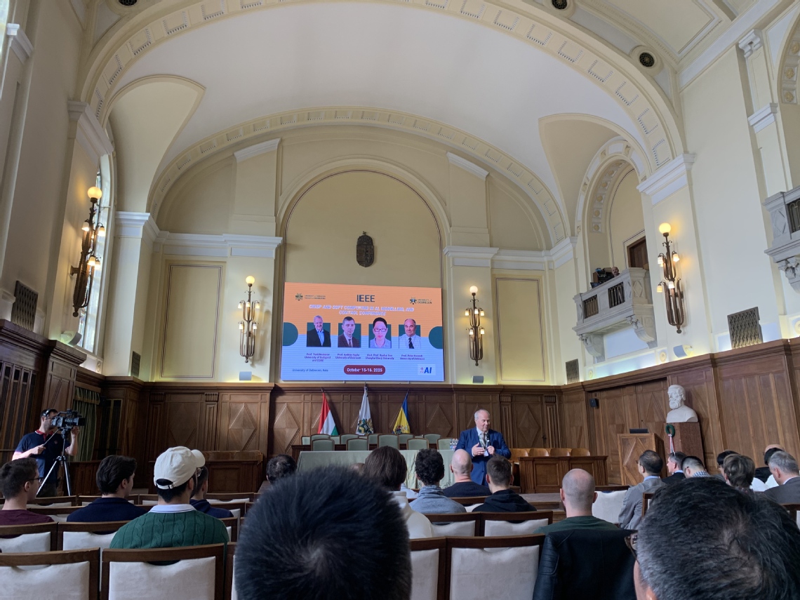 15日上午,在德布勒森大学主楼,我校师生参加了“IEEE第一届关于人工智能、建模和控制领域计算会议”,机械学院副教授高学海作了“巨型齿轮智能设计系统”主题报告,会后与国际学者交流探讨,分享研究成果。