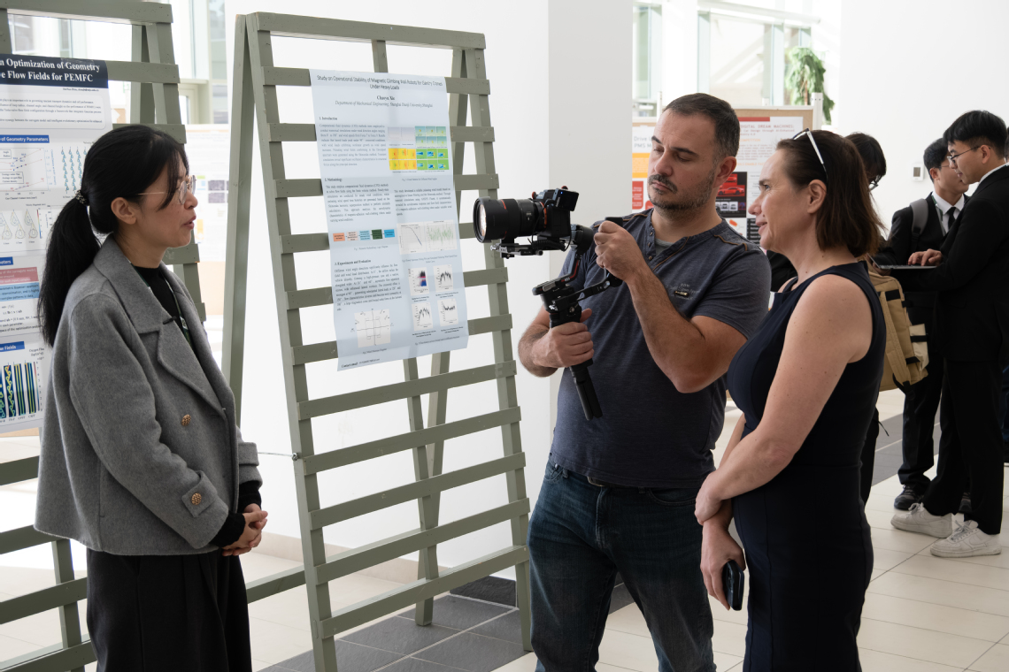 学术会议召开期间,德布勒森大学工程学院一楼大厅张贴出我校师生的学术海报,供参会代表与学生参观交流,我校师生也积极与其他参会的海报作者交流互动。