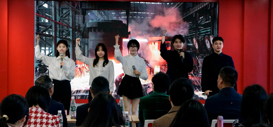 仪式伊始,电子信息学院学生张经纬以双重身份亮相——既是主持人,亦是获得第七届中华经典诵写讲大赛上海赛区“诵读中国”经典诵读大赛二等奖作品——《大工匠》的表演者。其所在展演团队5名学子,以铿锵语调、整齐手势传递“坚守匠心、追求卓越”的精神内涵,台词“我们是骄傲的大工匠,是这里的主人”引发在场师生共鸣。