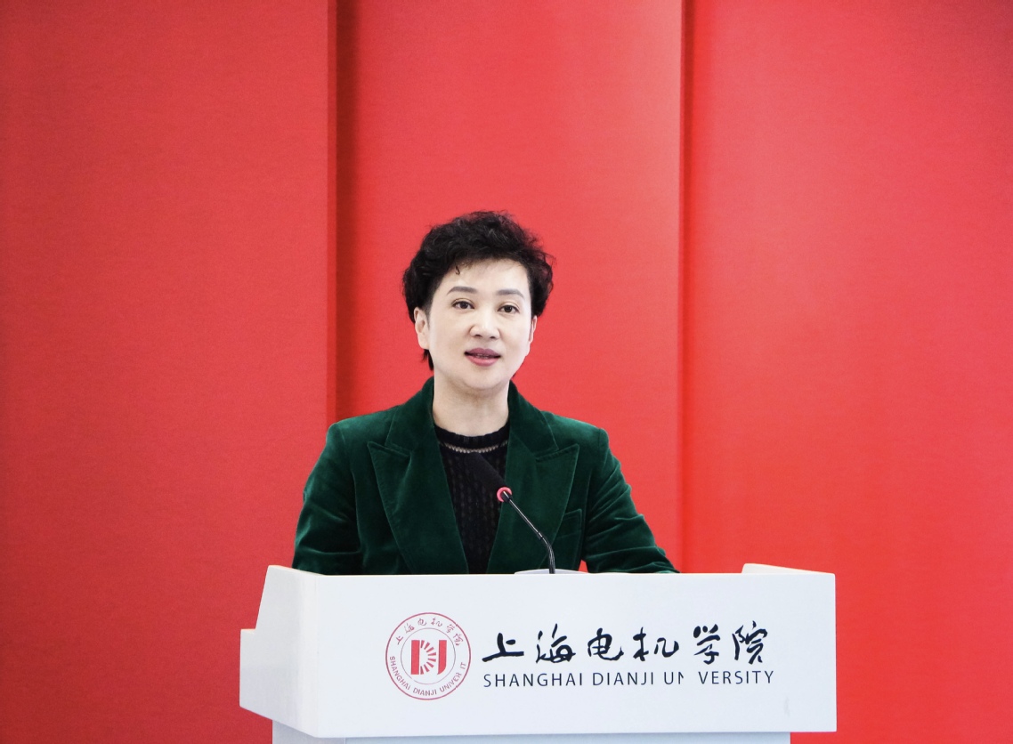董健教授在发言中回顾了上海戏剧学院与上海电机学院在美育育人方面的长期合作,表示双方联动不仅为两校学子提供了多样的学习与实践平台,更打破了专业壁垒,实现了“艺术审美”与“科技素养”的跨界融合,在协同育人领域探索出一条特色路径。她还从艺术传承角度分享了对经典诵读的见解,鼓励学子以声为媒,读懂经典、传播经典。