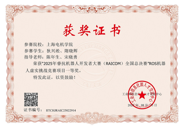 2025年8月17日至22日,睿抗机器人开发者大赛(RAICOM)CAIM工程创客赛道全国总决赛于杭州临平国家卓越工程师实践基地举行。该赛事由工业和信息化部人才交流中心主办,北京搜获科技有限公司承办,共设魔力元宝、四足多模态巡检、空中侦察、ROS机器人虚实挑战、物流小车、机器视觉系统创新等15个赛项,吸引了全国众多高校参与。经过三个月的积极备战,我校电子信息学院机器人竞赛团队在省赛中脱颖而出,成功晋级全国总决赛,并在ROS机器人虚实挑战赛中荣获全国一等奖1项、三等奖3项的优异成绩。
