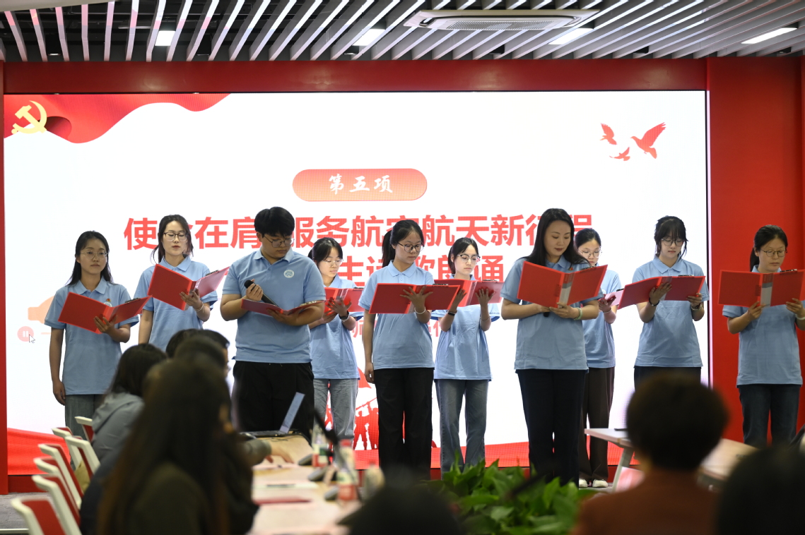 外国语学院第四党支部师生代表带来的诗歌朗诵《使命在肩·服务航空航天 启航新征程》将现场氛围推向高潮。诗声铿锵、情感炽热,以诗的形式传递长征信念,用情的表达诠释电机人的勇于担当,让航空航天梦想的火焰在每一个青年心中燃烧得更加明亮。
