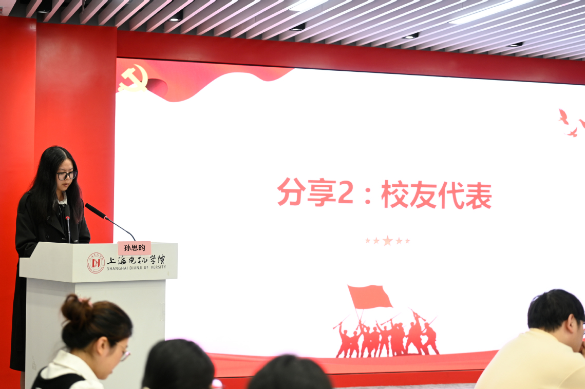 2015级校友、上海电气集团人才交付中心招聘经理叶慧玲从在校内的专业学习,参加海外交流项目,到求职和工作经历,讲述了自己的心路历程,将自身的成长历程与长征精神相融合,阐释了新时代青年传承红色基因,赓续奋斗精神的深刻体悟。她号召学弟学妹们在学好自身专业课的同时,尽早开始职业生涯规划、确定职业发展目标,在自己的求职长征路上砥砺前进。