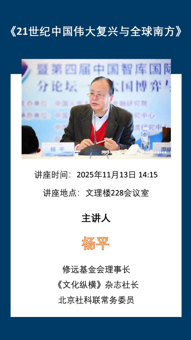 杨平,修远基金会理事长,文化纵横杂志社长,北京社科联常务委员。1990年代,参与创办《战略与管理》杂志,使该杂志迅速跃升为上世纪九十年代中国思想界旗帜性的期刊。2004年,参与创办中国首家由百名企业家发起的环保组织——阿拉善SEE生态协会,任创始秘书长,该组织至今已成为中国公益界最具影响力的环保组织之一。2008年,创办《文化纵横》杂志,该期刊已进入社会科学核心期刊(CSSIS),发行量破万,成为当代中国学术思想界卓具影响力的思想阵地。2017年,因参与主编大型教材《中华文明通论》获中央社会主义学院课题一等奖。著有《社会主义的第三次浪潮》《逆全球化、资本主义的历史逻辑及未来趋势》等文章。