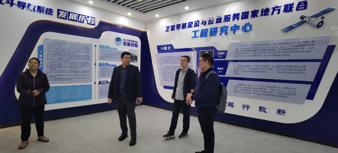 参访科研平台拓视野,共谋学科建设新方向。会后,调研团一行参观了“卫星导航定位与位置服务国家地方联合工程研究中心”。其间,双方围绕电子信息学院建设空间多维感知与抗干扰、空间认知理解与具身推理、空间自主决策与控制、空间孪生与系统仿真等领域的建设规划和构建AI赋能的“感知-理解-决策-验证”闭环体系进行深入探讨。