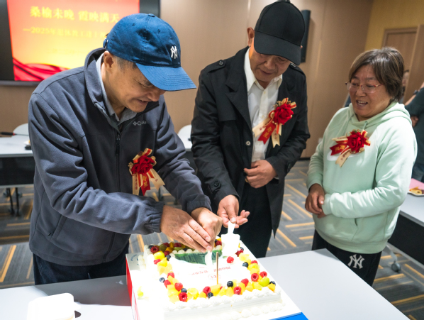 伴随着悠扬的生日歌,祝寿环节开启,生日蜡烛被缓缓点燃,退休教职工们共切生日蛋糕,现场欢声不断、笑语满堂,大家相互送上诚挚祝福。