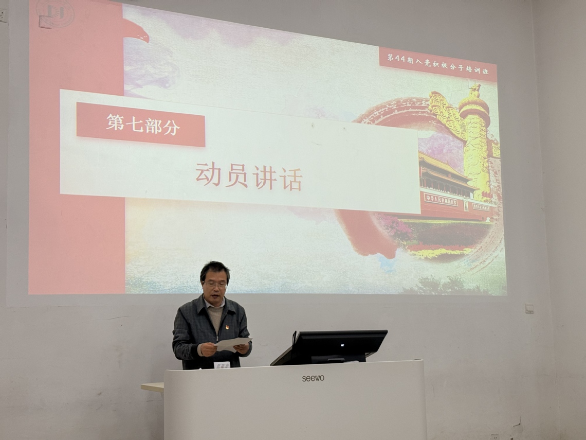 专职组织员冯雯雯老师详细介绍了本期培训班的整体安排与学习考核要求。她提到培训班是加强入党积极分子思想淬炼、政治历练和党性锻炼的大熔炉,本次培训涵盖理论授课、主题研讨、参观学习、红色观影、志愿服务等多个课程模块,在内容上既有党章的系统学习,又跟进学习党的二十届四中全会精神,通过系统化的整体安排,助力学员全方位提升政治素养,同时她着重强调了考勤纪律、学习任务与结业标准,为培训有序开展筑牢保障。