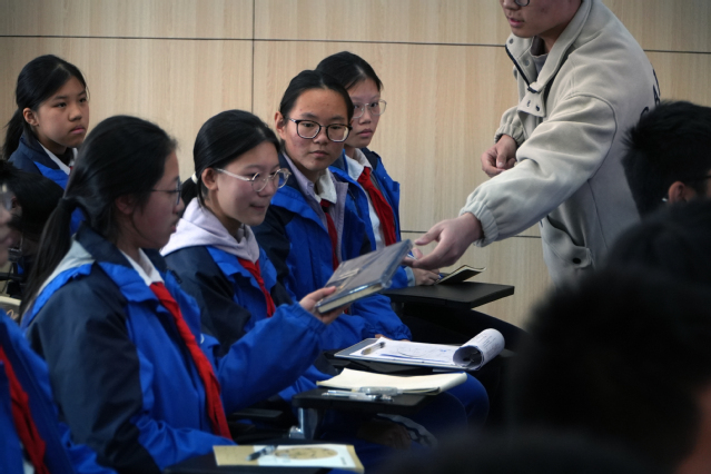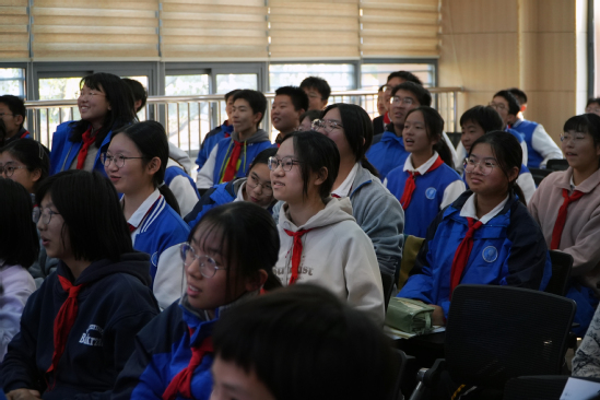 在轻松融洽的交流中,同学们畅谈了对大学生活的想象——有人期待“轻松自由”,也有人预想“忙碌充实”。而当话题回到初中生活,大家普遍表示“学业任务重、考试频率高”。面对学弟学妹的共鸣,张雨灿娓娓道来自己的大学经历:从高效学习方法到可喜的成绩收获,从积极参与志愿服务到勇敢挑战陌生领域。她用实际行动诠释了“没有天生的学霸,都是好习惯的厚积薄发”,也激励着在场同学勇敢追梦。