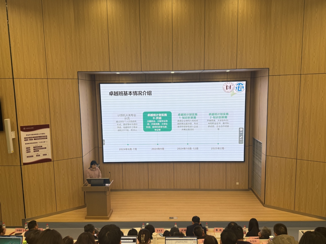 会上,电子信息工程专业负责人朱一群老师展示了该专业在产教融合中的成果。通过重构课程体系,新增芯片测试与应用模块、AI+课程及航天航空、智能制造领域课程,构建“1+1+3+4”实践教学体系,让学生从大一到大四逐步深化实践能力,部分学生参与的芯片测试项目已对接企业真实需求。软件工程专业负责人芦立华老师介绍了软件工程卓越班的特色成果,卓越班自2024年9月启动以来,已组织学生参与企业参观、专家讲座、创客马拉松大赛等活动,学生积极参与大学生科创项目和企业项目,2025年还新增《鸿蒙应用开发》产教融合课程,为培养软件领域高素质人才奠定坚实基础。