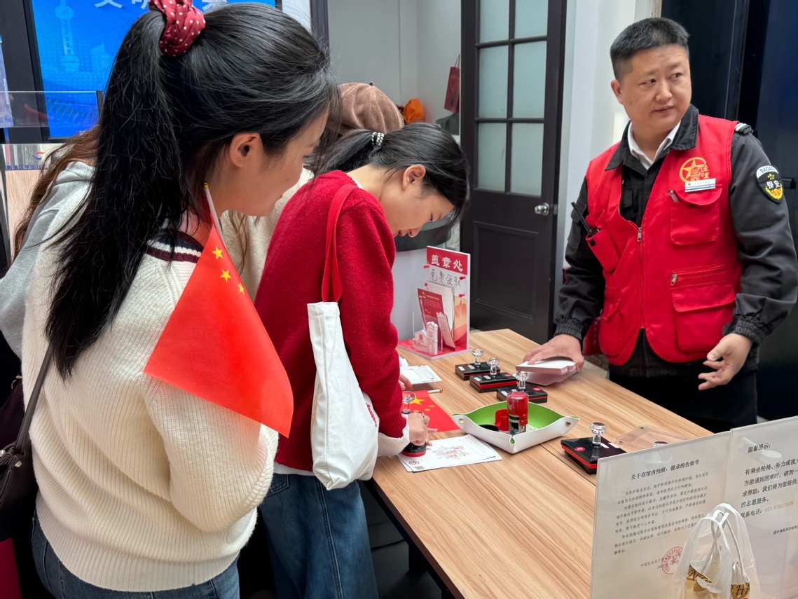 参观尾声,党员们纷纷来到服务台,在工作人员指引下加盖场馆特色纪念章。印章中隐约可见石库门建筑轮廓与飘扬的红旗元素,与场馆历史底蕴相得益彰。指尖轻按间,便将“渔阳星火” 的记忆永久留存。这枚纪念章是红色足迹的见证,更是青春使命的接力棒,要让“以青春之我创建青春国家”的精神刻在心里、落在行上。