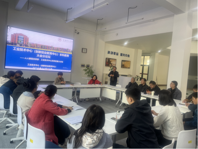 为贯彻落实党的二十届四中全会精神、推动高等教育高质量发展,进一步深入学习研讨学校本科教育大会精神,11月21日下午,工业技术中心(创新创业教育中心)在科创驿站ie Center路演厅成功举办主题为“人人都是改革家:工业技术中心改革发展大讨论”的本科教育大会分论坛。中心全体教职工和企业专家参加论坛,论坛由工业技术中心(创新创业教育中心)副主任吴斌主持。