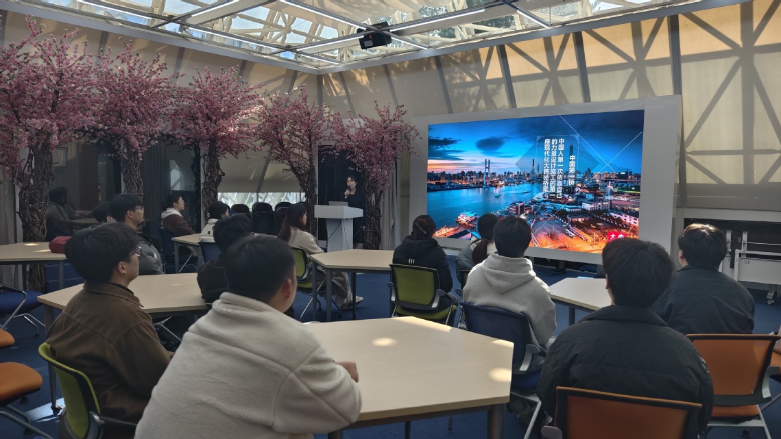 在纪念馆红色讲堂内,一场主题鲜明、内容丰富的微党课以独特视角叩击心灵。此次微党课以浦东发展为脉络,聚焦南浦大桥的建成历程——这座曾创多项技术突破的斜拉桥,以“盘龙昂首”之姿跨越浦江,成为浦东开发开放的时代序曲。烈士们“千锤百炼如纯钢”的信仰与建桥者攻坚克难的精神交相辉映,机械学子们深刻感悟到,从革命先辈的热血坚守到建设者的自主创新,初心使命始终一脉相承,更坚定了以专业所长赋能国家建设的信念。