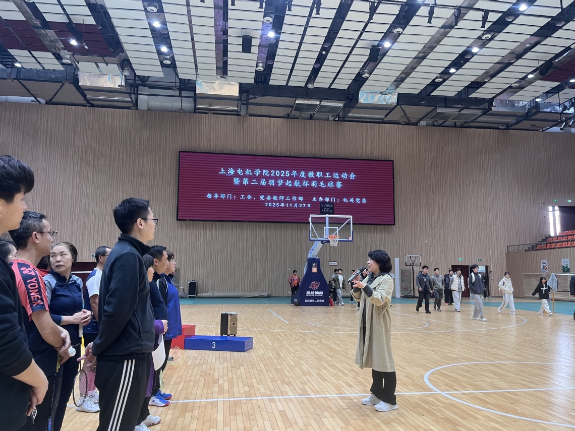 为弘扬体育精神,促进教职工身心健康,丰富校园文化生活,11月27日,2025年教职工运动会暨第二届“羽梦起航杯”羽毛球赛在我校临港校区体育馆拉开帷幕。本次比赛由学校工会和党委教师工作部指导,机关党委主办,吸引了热爱羽毛球运动的教职工组成的8支队伍踊跃参与。赛事采用团体“抢50分”赛制,充分展现了教职工高超的球技与良好的精神风貌。