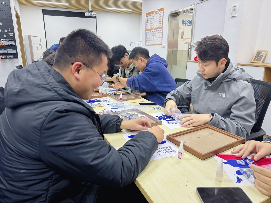 当日下午,支部党员和入党积极分子在21宿活动室参加了“指尖非遗·匠心如磐”党风廉政主题实践活动。活动将廉政教育融入非遗手工艺体验,设置了竹编画、金箔画和青花陶瓷画三项内容。