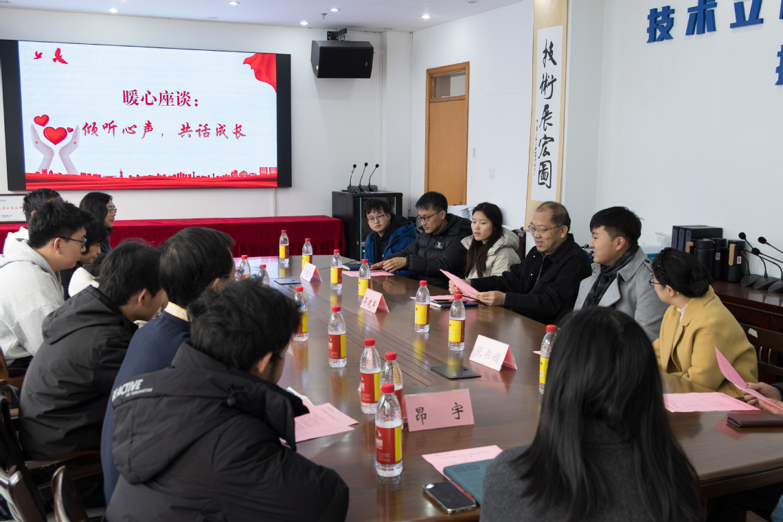 活动在温馨融洽的交流中拉开序幕。在“暖心座谈:倾听心声,共话成长”环节,与会师生围坐一堂,围绕学习生活、职业规划与成长困惑展开真诚对话。学生们分享了自身面临的挑战与对未来发展的思考,与会老同志和教师们则结合自身阅历与专业视角,给予了耐心的倾听与温暖的回应,现场氛围亲切而活跃,心与心的距离在交流中不断拉近。