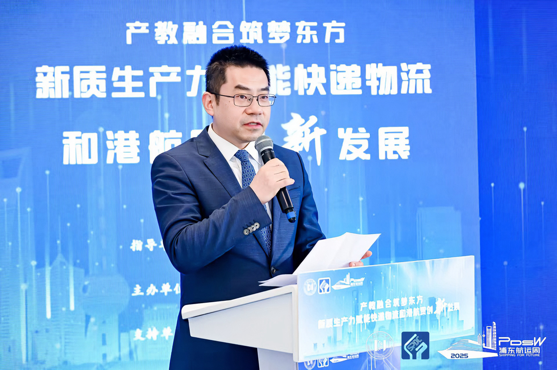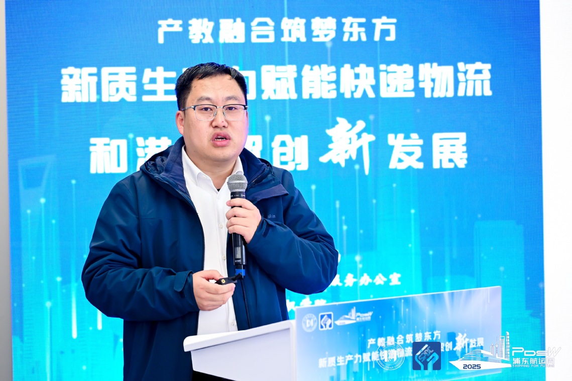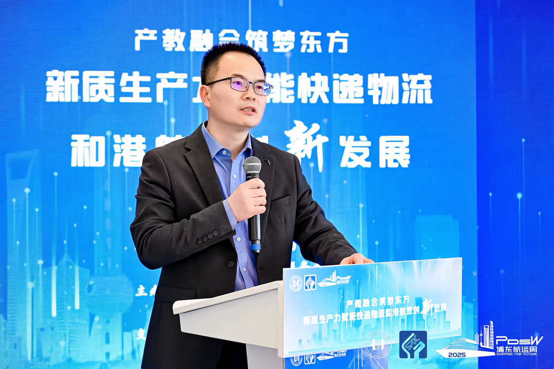 首先,上海市邮政管理局副局长、二级巡视员余洪伟先生、浦东新区航运服务办公室副主任王骞先生、上海电机学院副院长杨俊杰先生和浦东新区教育局高中(职业)与终身教育处处长马淑颖女士,围绕快递物流与港航贸产业高质量发展政策、产教融合支持体系等内容作致辞分享,明晰了行业发展方向与人才培养导向。特别是杨俊杰副院长在致辞中,指明学校立足上海国际航运中心建设大局,扎根临港新片区国家产教融合试点,深化产教融合、推进校企协同可为产业高质量发展注入不竭动能,也期待在共建协同育人新生态、共筑创新攻关新平台和共搭人才流动新通道这三个领域与相关企业共同开展深入合作。