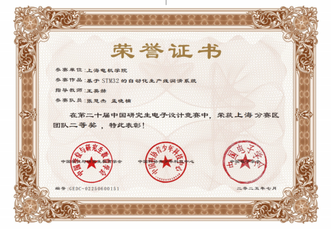 张慧杰:荣获第二十届中国研究生电子设计竞赛上海分赛区团队二等奖;