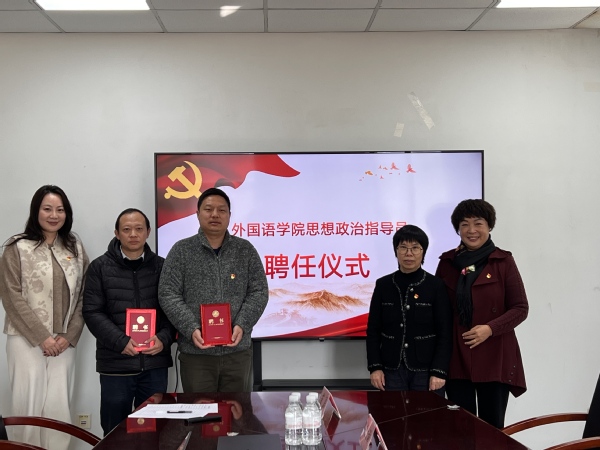 为进一步强化思想政治教育工作队伍建设,推动党的创新理论与育人过程深度融合,12 月9日,外国语学院党总支在文理楼413举行思想政治指导教师聘任仪式暨二级中心组专题学习会。马克思主义学院党总支书记范冬姣,思想政治指导员胡欣诣、苗磊,外国语学院党总支副书记、副院长甄一捷,副院长刘巍、全体党支部书记参加活动。活动由外国语学院党总支书记、院长张玉双主持。
