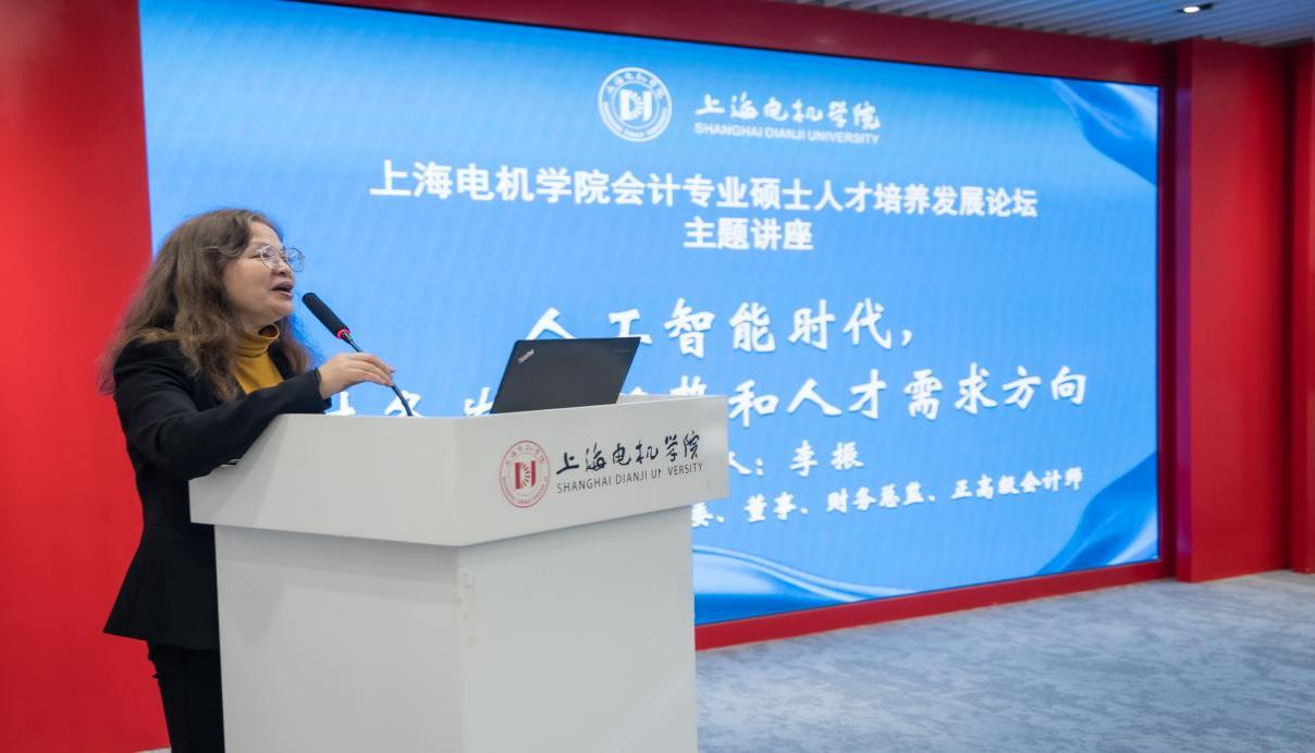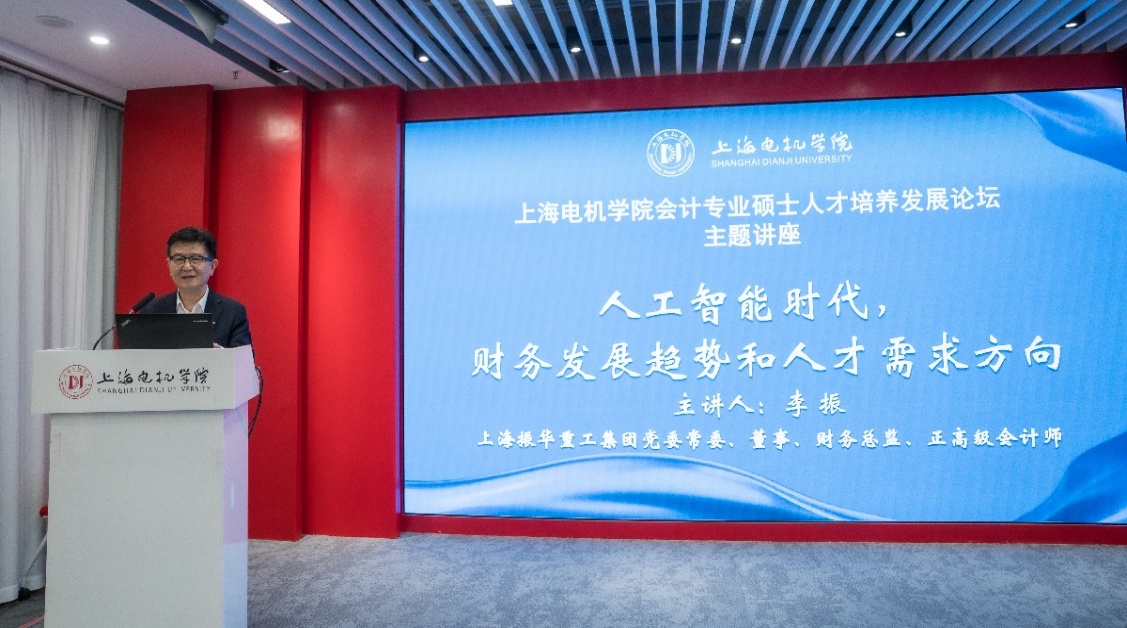 随后由上海电机学院总会计师、会计专业硕士学科带头人张川教授主持,上海振华重工集团党委常委、董事、财务总监李振致辞并做主题讲座。他指出,上海振华重工作为全球领先的港口机械、海洋工程装备制造企业,在发展过程中高度重视财务管理和会计人才队伍建设。当前,随着数字经济的快速发展和行业竞争的日益激烈,企业对高素质会计专业人才的需求更加迫切。上海电机学院培养的会计专业硕士毕业生在行业内具有良好的口碑,此次签署合作协议将实现双方优势互补、互利共赢。振华重工将为上海电机学院提供实践教学基地和真实的业务案例,助力学校提升人才培养质量;同时也期待通过合作吸纳更多优秀毕业生,为企业的高质量发展注入新的活力。