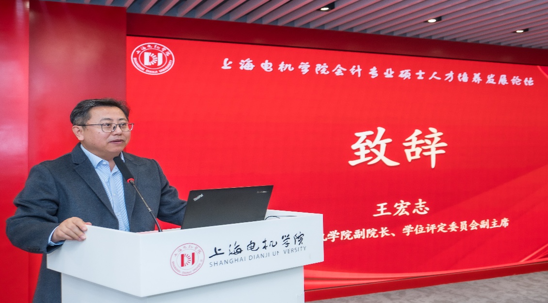论坛伊始,上海电机学院副院长王宏志教授发表致辞。他表示,上海电机学院作为一所以工科为特色,兼顾经管等学科协调发展的高校,始终坚持“技术立校、应用为本”的办学定位。会计专业硕士(MPAcc)项目自设立以来,始终致力于培养具备扎实会计专业知识、较强实践能力和创新精神的高层次应用型人才。此次与上海振华重工达成合作协议,是学校深化产教融合、推进人才培养模式改革的重要举措。学校将以此为契机,充分发挥学科优势和人才培养特色,为企业输送更多优秀的会计专业人才,同时也希望借助企业的实践平台,提升学生的实践能力和综合素养。