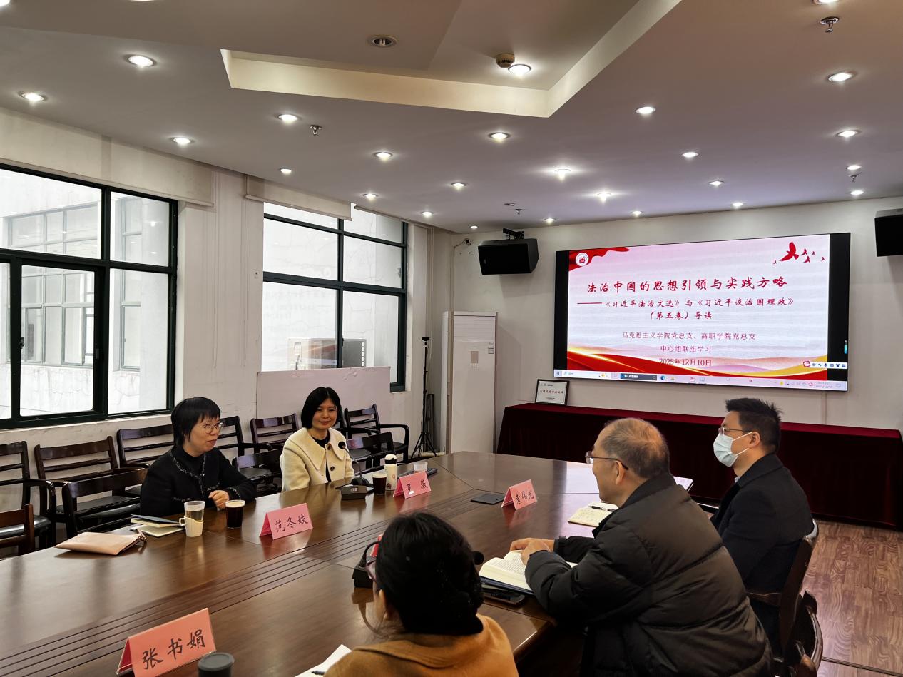 近日,马克思主义学院党总支与高职学院党总支在技术中心B208会议室举行中心组联组学习会,围绕“深入学习习近平法治思想,推进高校法治建设与课程思政融合”展开专题研讨。两院中心组成员参会,共议依法治校实践路径。