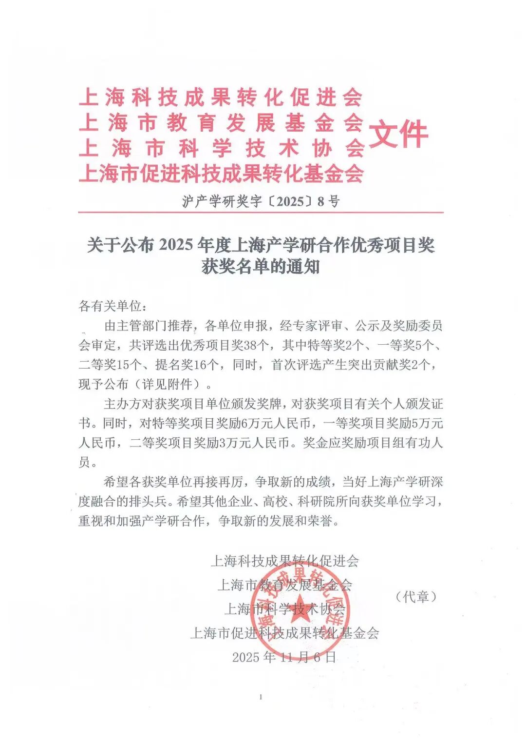 (2025年度上海产学研合作优秀项目奖获奖名单)