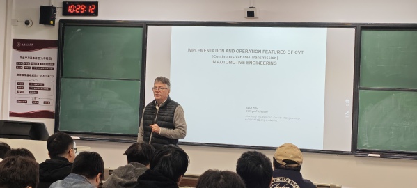 2025年12月机械学院海外名师项目迎来匈牙利德布勒森大学工程学院国际办公室主任、院长外事代表Zsolt TIBA博士、教授。此次来访,TIBA教授以“汽车工程中CVT与E-CVT(无级变速)的实现与运行特性”专题讲座为核心,同时深度参与本学期“汽车构造”本科课程教学,为学院师生带来国际前沿的专业指导与国际化课堂体验。