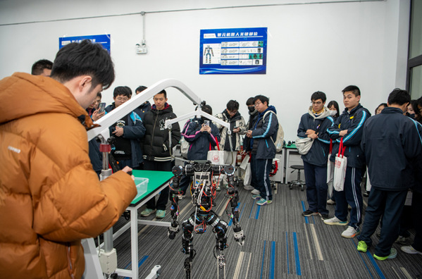 宣讲结束后,参访师生走进机械学院具身智能机器人实验室、材料力学实验室以及航空学院飞机装配实验室。在实验室里,专业教师通过趣味演示与实操讲解,将抽象的理论知识转化为直观可感的实验现象。闪烁的仿真屏幕、灵活运转的机器人,让学子们近距离领略科技魅力,大家纷纷驻足观察、踊跃提问,现场互动氛围热烈。