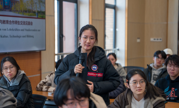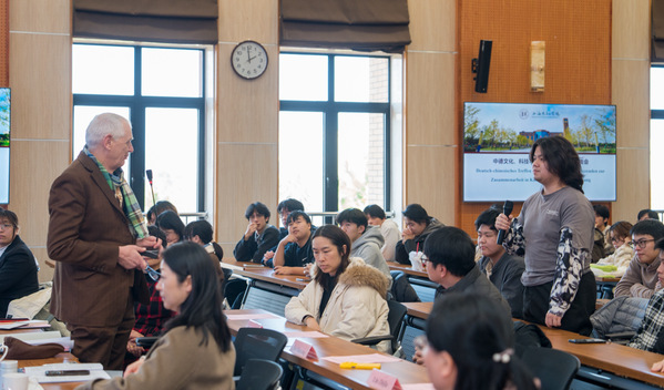 在与师生的面对面交流中,孔有为(Uwe Koch)回顾了中德两国在政治、经济、教育、科技领域的发展历程。他强调,中德教育合作历史源远流长,近年来两国学生互访交流增长显著,在德就读的中国学生规模达4万余人,稳居德国最大留学生群体之列;同期在华就读的德国学生亦有8千余人。德国高质量的高等教育体系受到中国学生青睐,中国市场对德国企业也具备强劲吸引力,德国将持续欢迎中国学生赴德学习交流,推动两国教育领域合作持续深化。