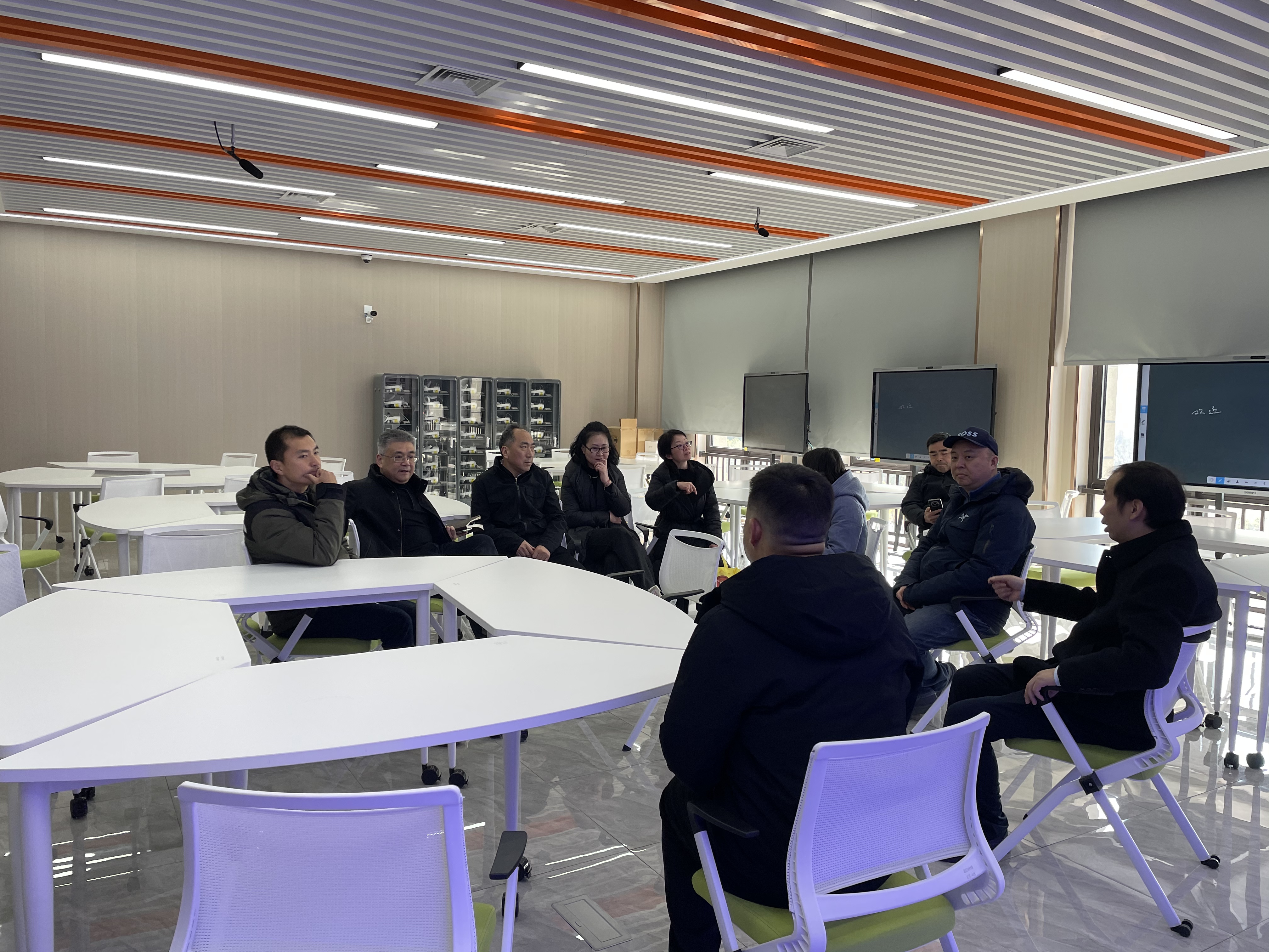 沈军对我校的热情接待和经验分享表示感谢,他简要介绍了中国浦东干部学院的情况,高度肯定了我校在校企协同、产教融合等方面形成的鲜明特色与显著成效,表示此次调研旨在交流信息化建设等方面的经验和做法,期待未来双方能够进一步加强合作交流。期间,双方人员还就智能楼宇、智慧教学平台等多个方面展开了深入探讨和经验分享。