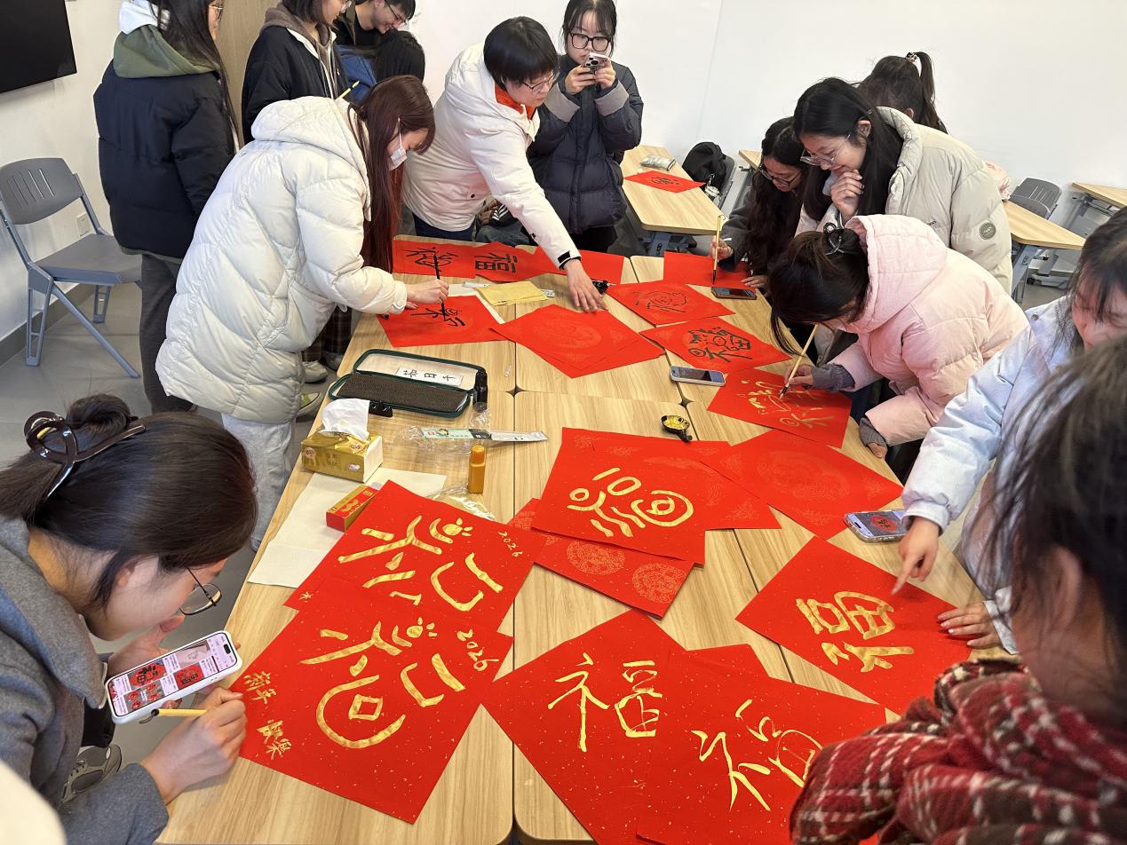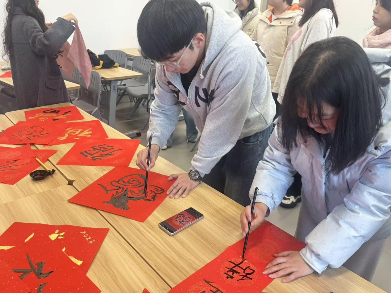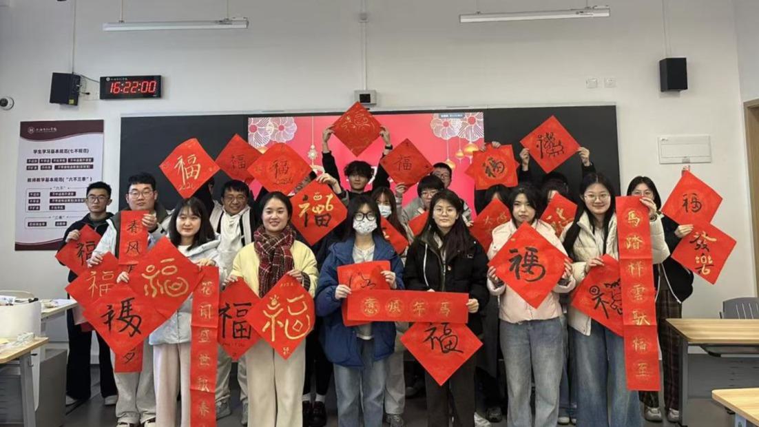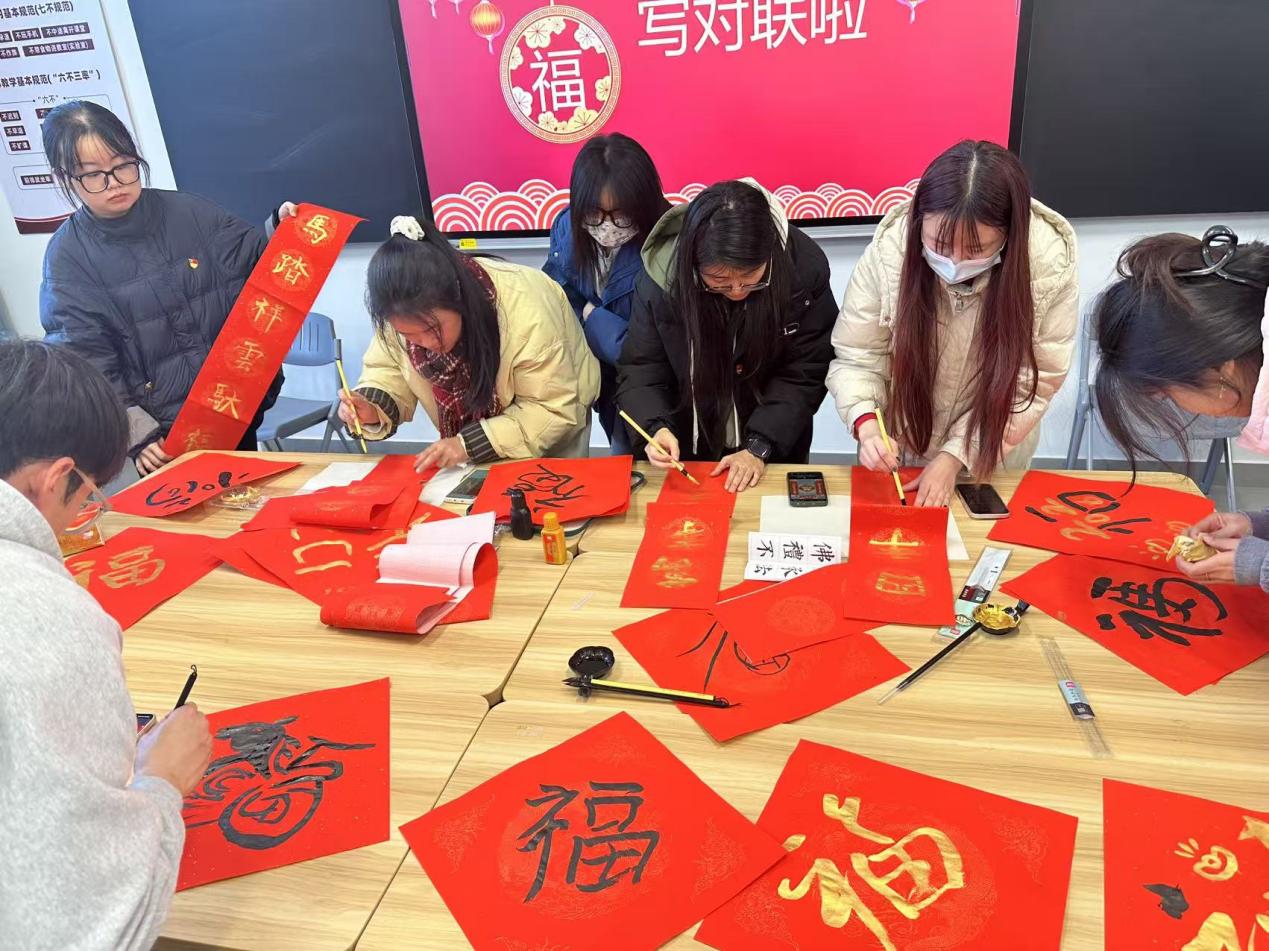 为深入贯彻落实党的二十届四中全会精神,推动理论学习与党性修养深度融合,进一步增强党支部的凝聚力和战斗力,近日,商学院党委研究生第一党支部在E教310举办了“翰墨迎春守初心,学思践悟强党性”主题党日活动。全体党员和入党积极分子齐聚一堂,通过理论学习“补钙”,复盘总结“蓄力”,文化创作“铸魂”,在热烈喜庆的氛围中共同迎接崭新的一年。