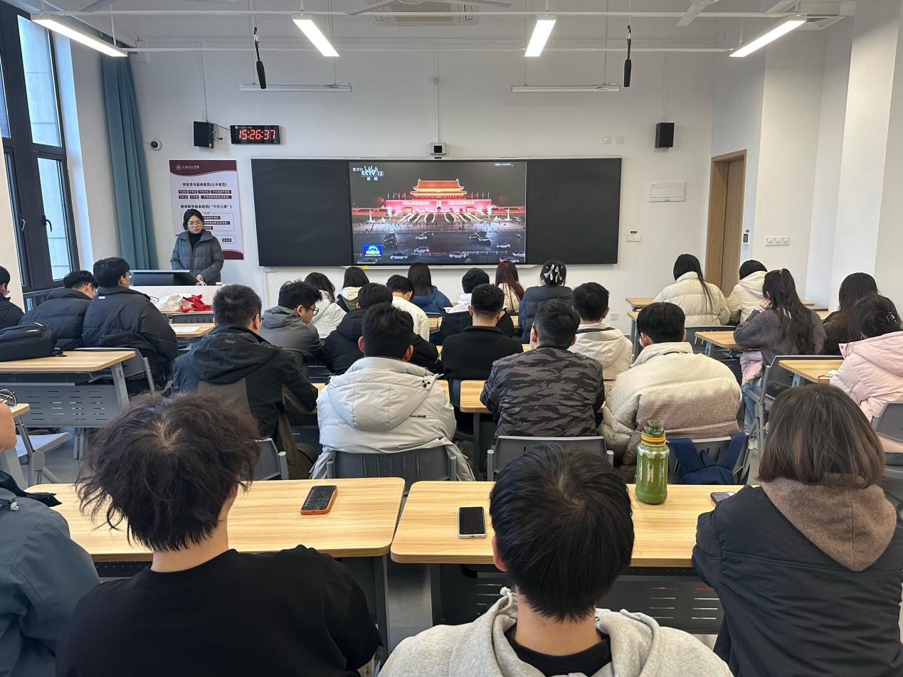 活动伊始,支部成员集体聆听学习习近平总书记2026年新年贺词,大家聚焦“青年担当”主题,结合自身专业与科研实际,谈感悟、话心声,现场气氛活跃。“观看习近平总书记新年寄语,我收获良多。”兰文惠同学动情地说道,“我将以专业学习为基,在电子信息领域勤学善研,用扎实行动回应期许,书写青年奋进篇章。”支部党员巩程程同学感悟道:“聆听新年寄语,字字千钧,饱含人民情怀。过去一年的成就催人奋进,新年的蓝图清晰坚定。作为青年,我深感责任在肩,将牢记嘱托,把个人奋斗融入时代洪流,用实干为强国建设贡献力量。”贾敏晶同学对此深表赞同,她提出:“作为新时代研究生,我们更应立足专业前沿,将个人科研追求融入国家发展大局,以科技创新服务社会需求,在实践中锤炼本领,不负时代赋予青年的使命担当。”