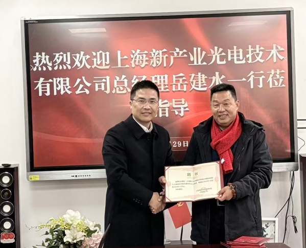 为深化产教融合、共育应用创新人才,2026年1月29日下午,上海新产业光电技术有限公司总经理岳建水、副总经理孙景乐一行莅临上海电机学院文理学院,双方举行产教融合合作签约与交流活动。校党委副书记朱洪春出席活动并致辞,标志着校企合作迈入新的实质性阶段。