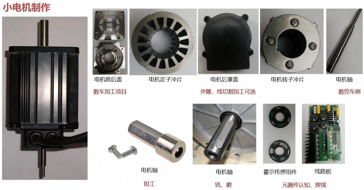 小电机项目课程以微型电机的设计、制造、测试与应用为核心,将机械设计、电子电路、材料应用、性能测试等多学科知识有机融合,引导学生从“被动接受”向“主动创造”转变,树立“大工程”思维,提升综合工程应用能力。