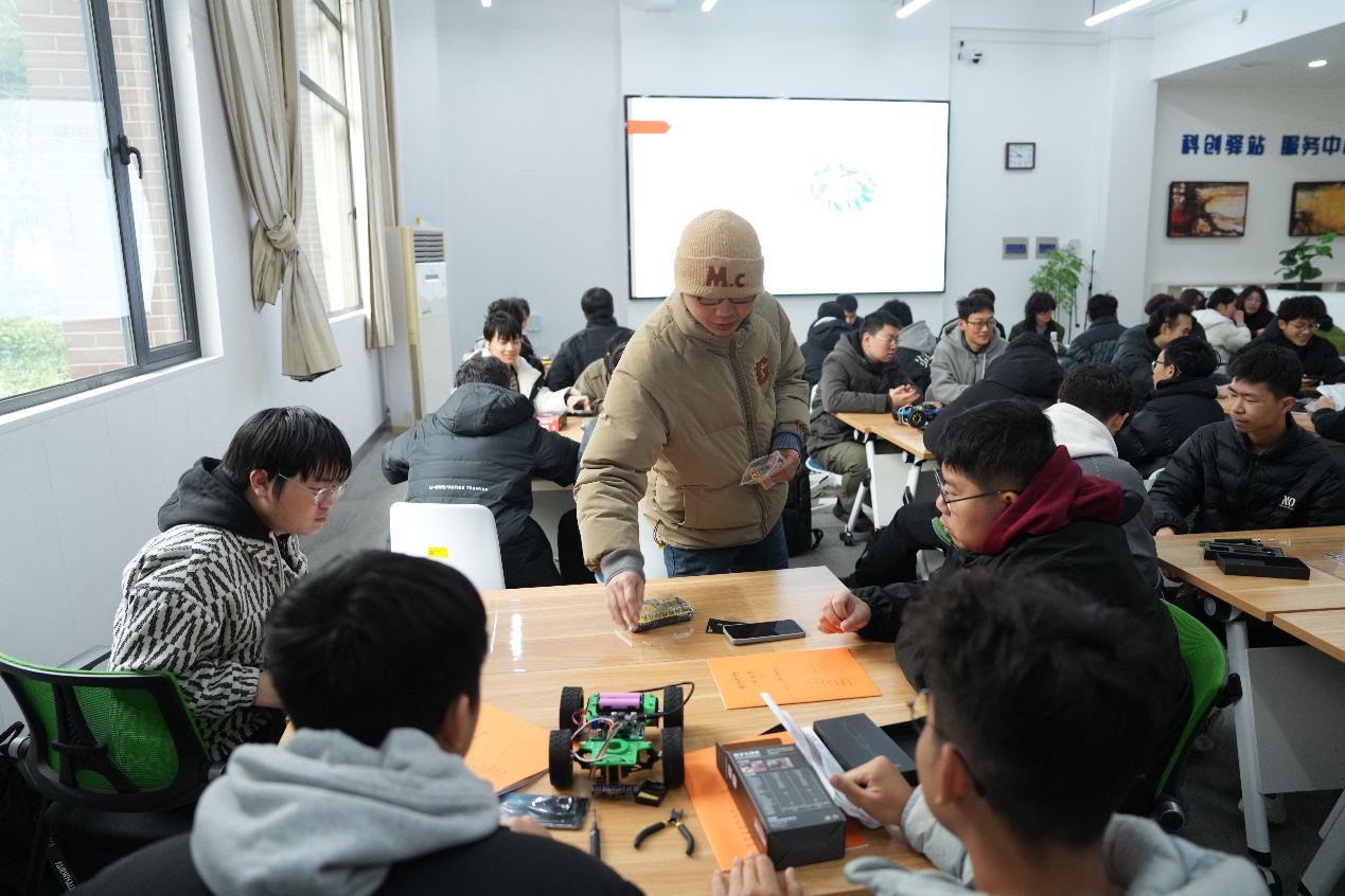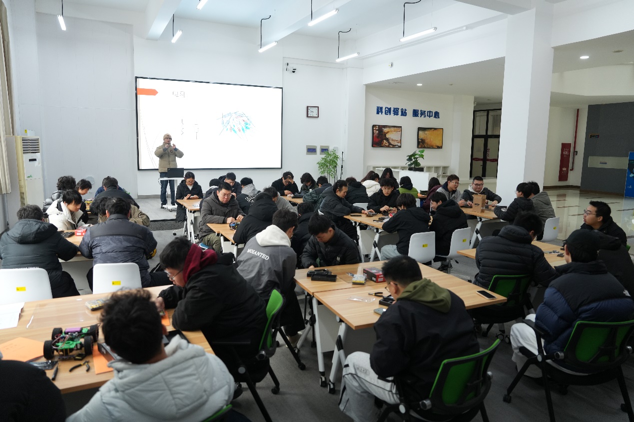 智能小车项目课程作为新学期重点项目制课程之一,以智能小车为载体,整合机械加工、电子焊接、编程调试三大功能模块,制作一辆能够自动沿黑色引导线行驶,感知前方障碍物并自动避让的智能小车。学生结合所学知识,在基础循迹避障功能上开展创新设计,衔接双创教育,培养创新思维与成果转化能力。
