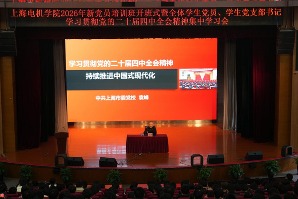 作为学校树立和践行正确政绩观学习教育的重要安排,为深入学习贯彻习近平新时代中国特色社会主义思想和党的二十届四中全会精神,落实新时代党的建设总要求,抓实学习教育部署落地见效,3月13日下午,上海电机学院2026年新党员培训班开班式暨全体学生党员、学生党支部书记学习贯彻党的二十届四中全会精神集中学习会在临港校区小剧场隆重举行。全体学生党员、学生党支部书记共470余人参加会议。