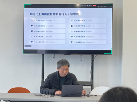 在法律法规与准则解读环节,与会教师集中学习《新时代上海高校教师职业行为十项准则》,明确坚定政治方向、潜心教书育人、关心爱护学生、坚守廉洁自律等十项行为规范;深入研读《高等学校预防与处理学术不端行为办法》,明确剽窃、抄袭、伪造、不当署名等七种学术不端行为界定,掌握预防措施、处理程序与惩戒要求,强调学术诚信是科研工作的生命线。
